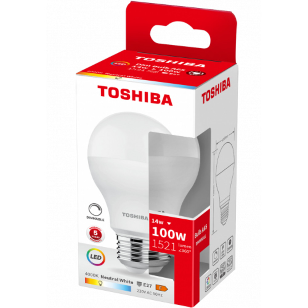 LED lámpa , égő , körte , E27 foglalat , 14 Watt , 180° , természetes fehér , dimmelhető , TOSHIBA , 5 év garancia