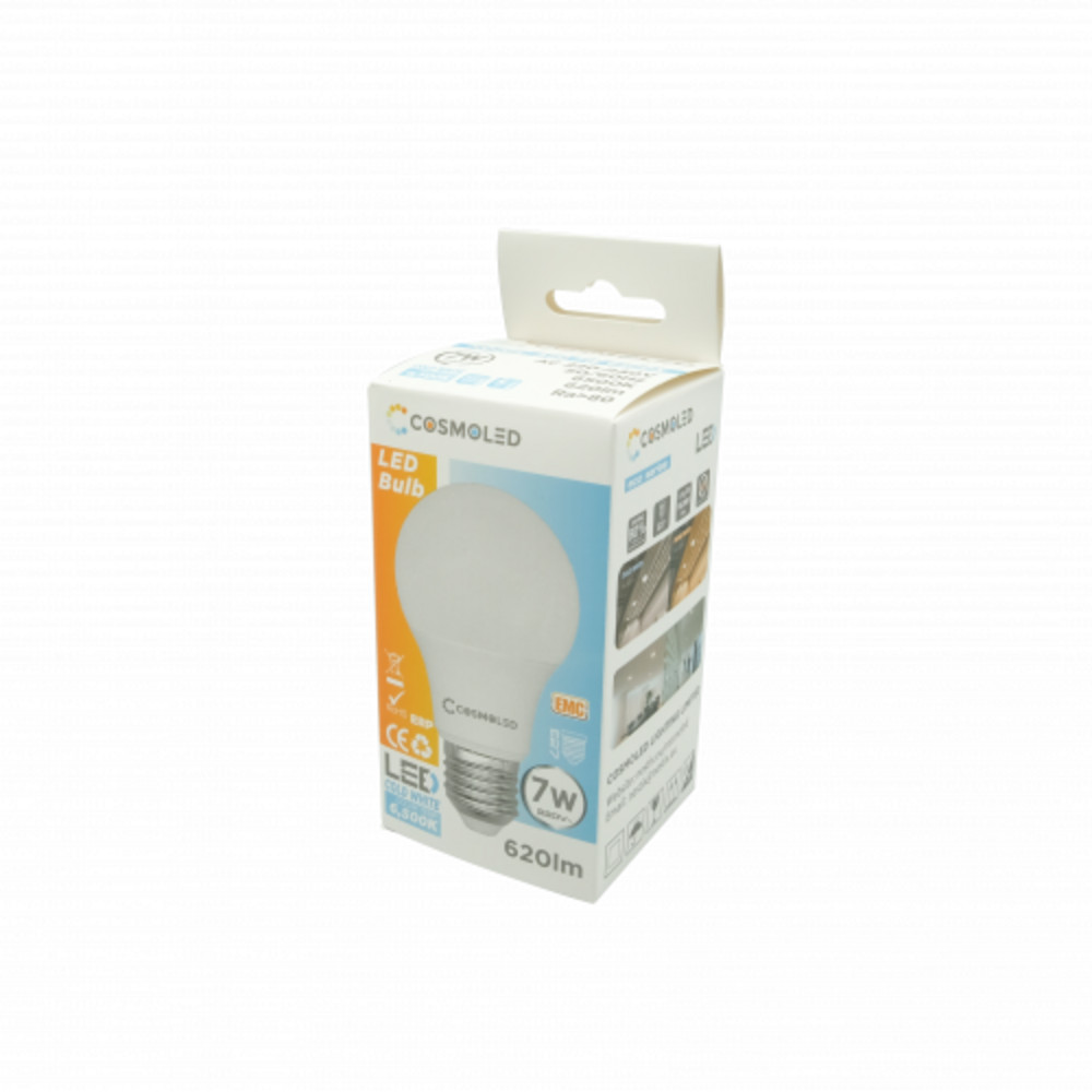 LED lámpa , égő , körte , E27 foglalat , 7W , hideg fehér , A60 , COSMOLED