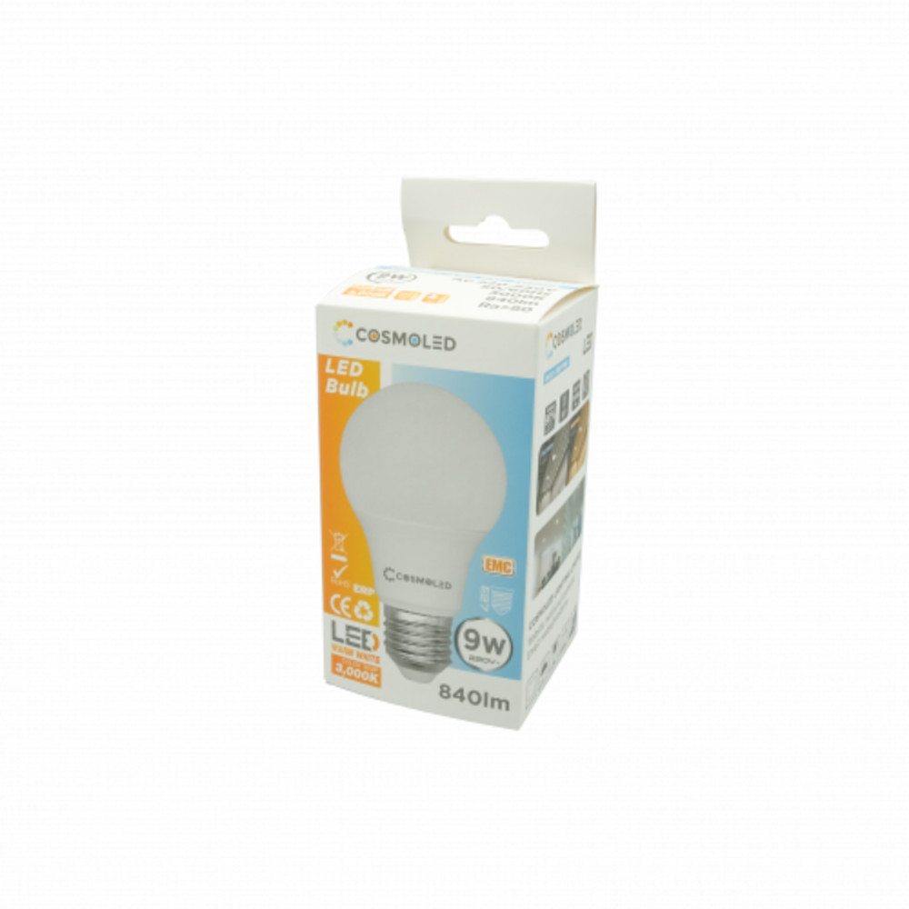 LED lámpa , égő , körte , E27 foglalat , 9W , meleg fehér , A60 , COSMOLED