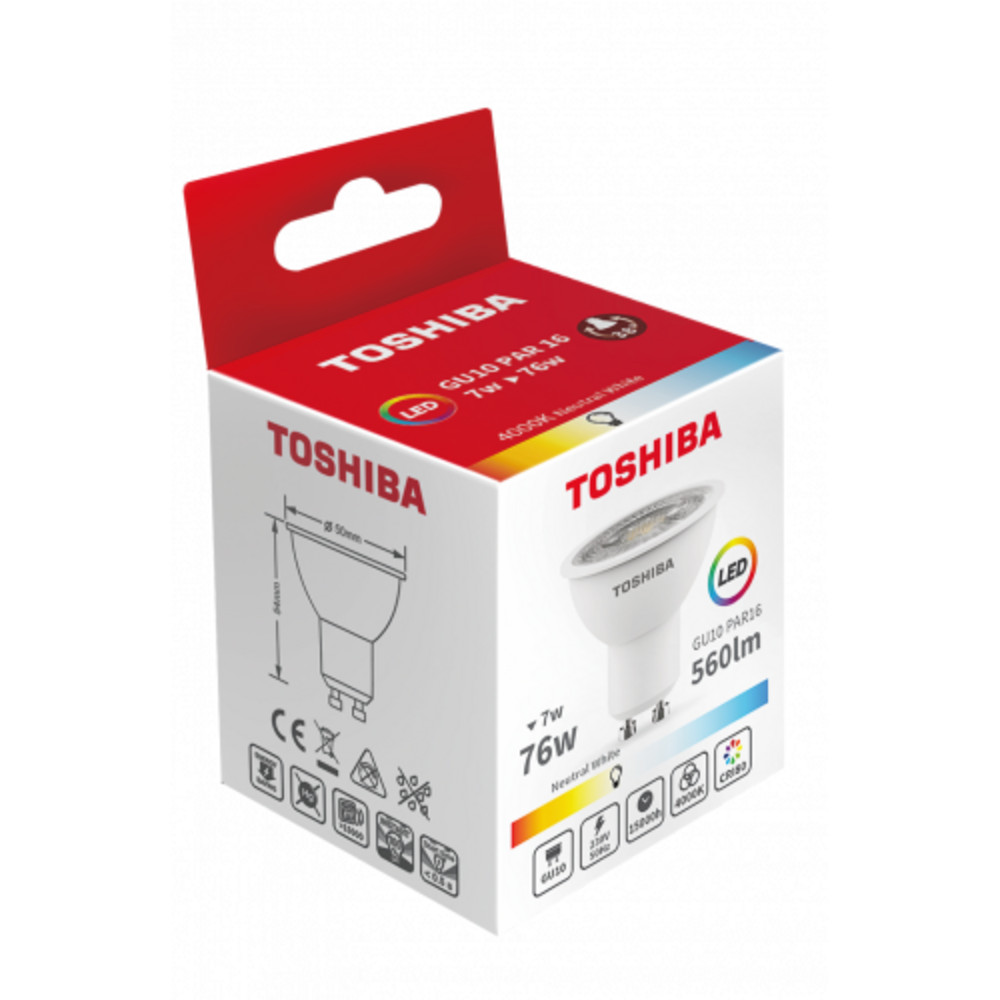 LED lámpa , égő , szpot , GU10 foglalat , 7 Watt , 38° , természetes fehér , TOSHIBA , 5 év garancia