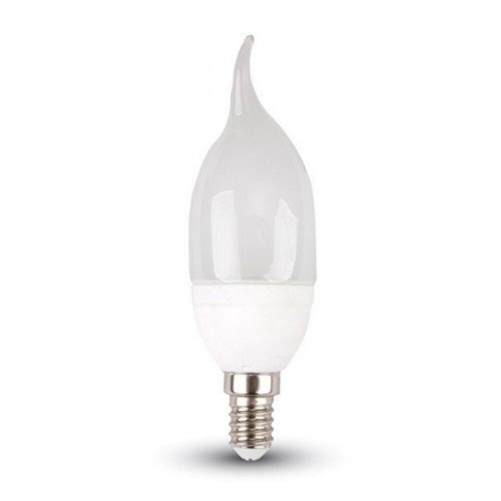 LED lámpa , égő , gyertya , láng forma , E14 foglalat , 4 Watt , 200° , meleg fehér