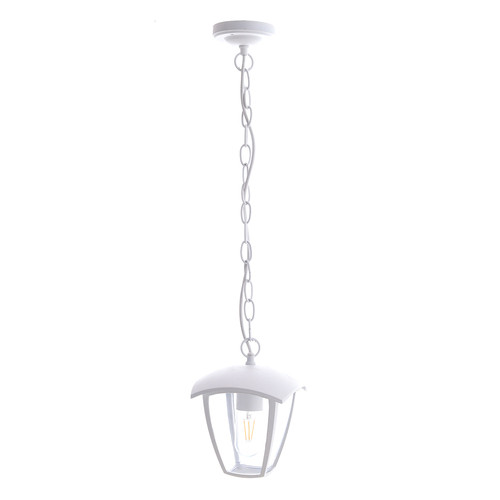 IP44-es védettségű, kültéri, E27-es foglalatú, matt fehér színű függesztett lámpatest