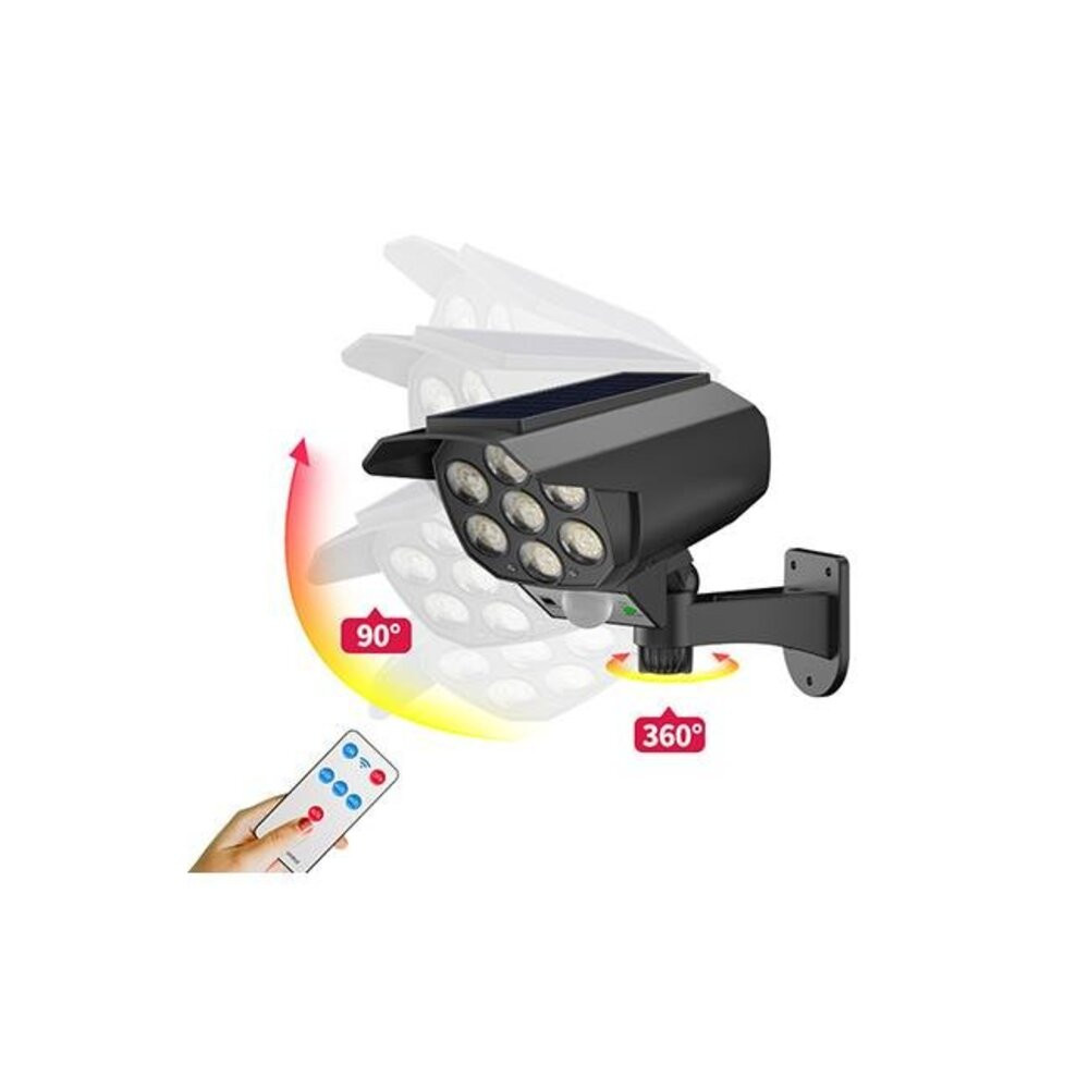 LED lámpatest, napelemes , oldalfali , álkamera , mozgásérzékelős , távirányítóval , 5 Watt , hideg fehér , kültéri , fekete , IP65