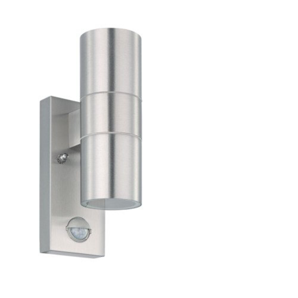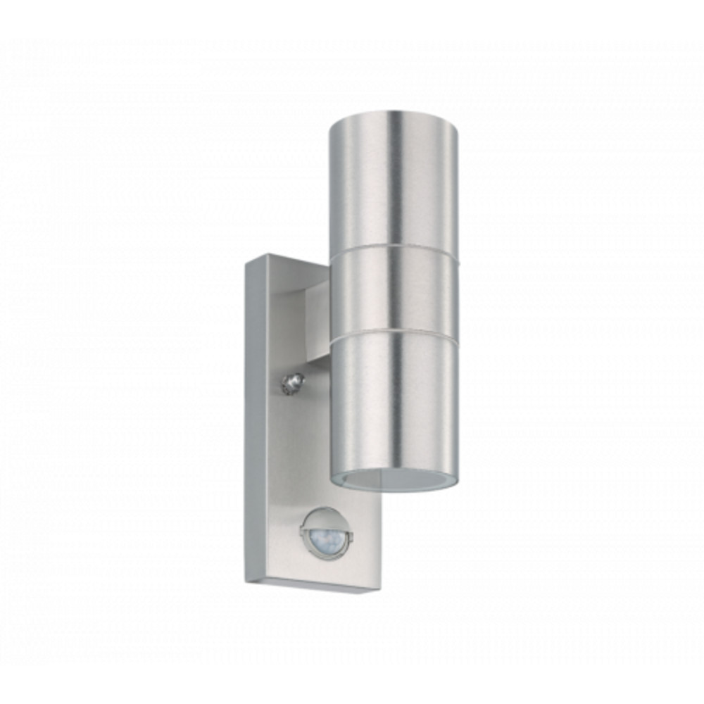 LED lámpatest , oldalfali , GU10 , 2x3W , mozgásérzékelős , meleg fehér , 2 irányú , nemesacél , kültéri , IP44 , EGLO , RIGA , 32898