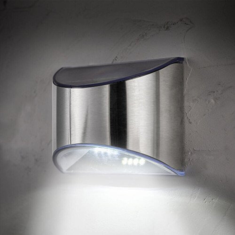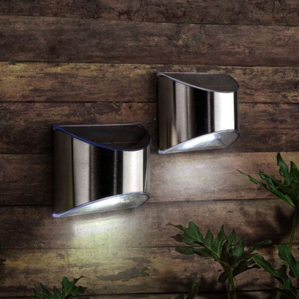 LED lámpatest szett , 2 darabos , napelemes , oldalfali , lépcsővilágító , hideg fehér , acél , IP44 , Modee