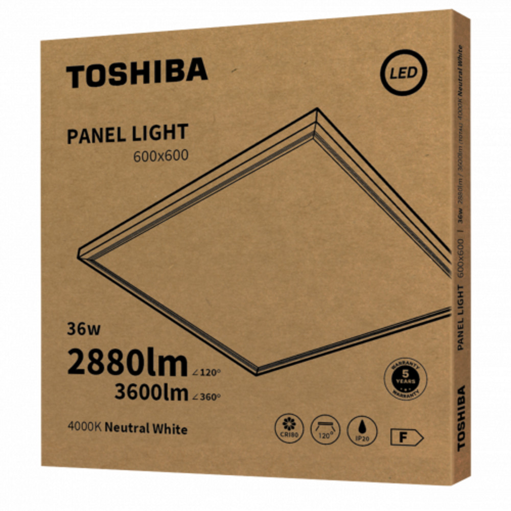 LED panel , 60 x 60 cm , 36 Watt , természetes fehér , UGR22 , backlit , TOSHIBA , 5 év garancia