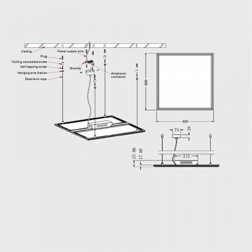 • Függeszték - ez 4 darab sodrott fémszélból álló, állítható készlet, amely segítségével mennyezetről belógatható a panel, állítható magassággal. A tápegység elhelyezhető a panel hátán.