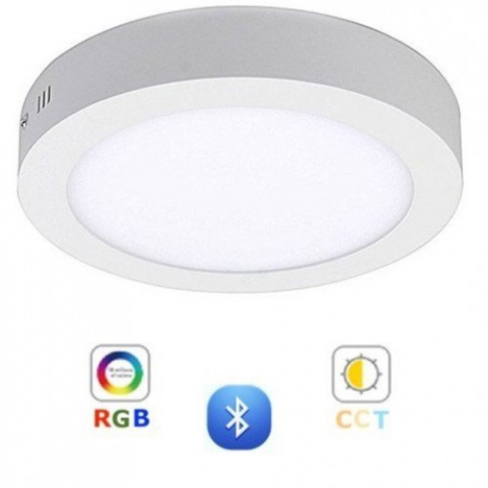 RGB-CCT LED panel , 12W , falon kívüli , kerek , dimmelhető , színes , állítható fehér színárnyalat , Bluetooth , LEDISSIMO SMART