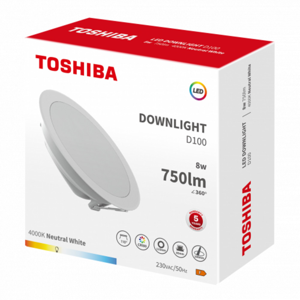 LED panel , mélysugárzó , 8W , süllyesztett , kerek , természetes fehér , IP40/IP20 , TOSHIBA , 5 év garancia