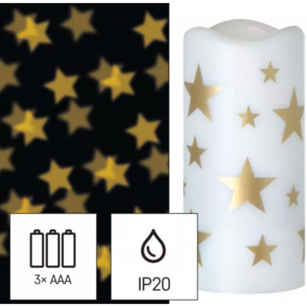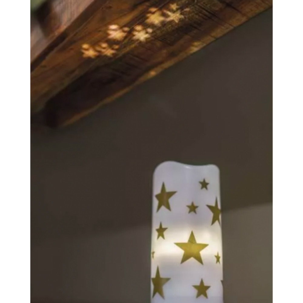 A gyertya formájú led projektor mozgó, csillagokat vetít a falra.