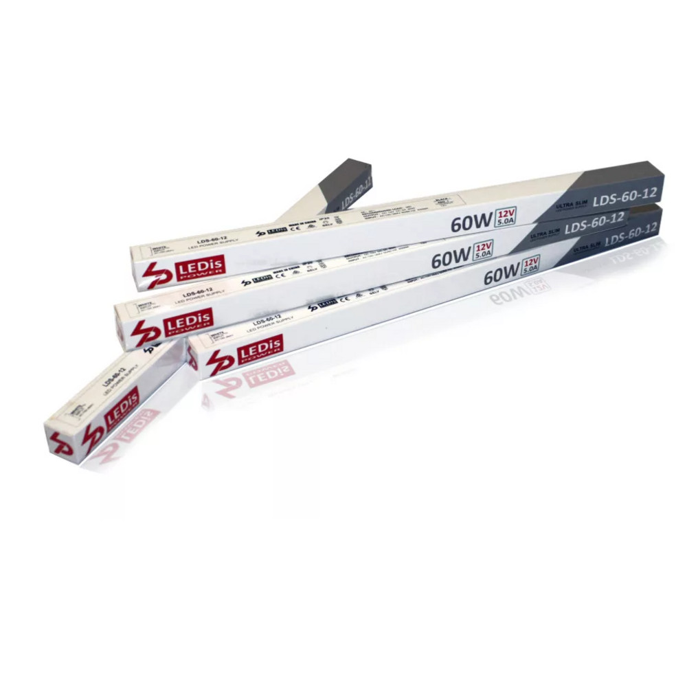 LED tápegység , 12 Volt , 60 Watt , 5A , ultra slim , 3+2 év garancia , LEDis , LDS-60-12