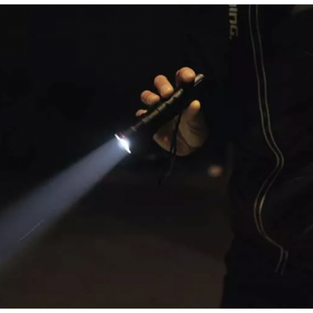 A fókuszálható zseblámpa csukószíjjal és strapabíró alumíniumvázzal 120 lumen fényerővel világít.