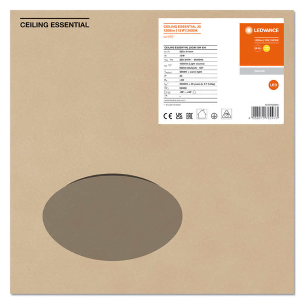 Ledvance Ceiling Essential fali és mennyezeti LED lámpa, melegfehér, 14,5W, 25cm
