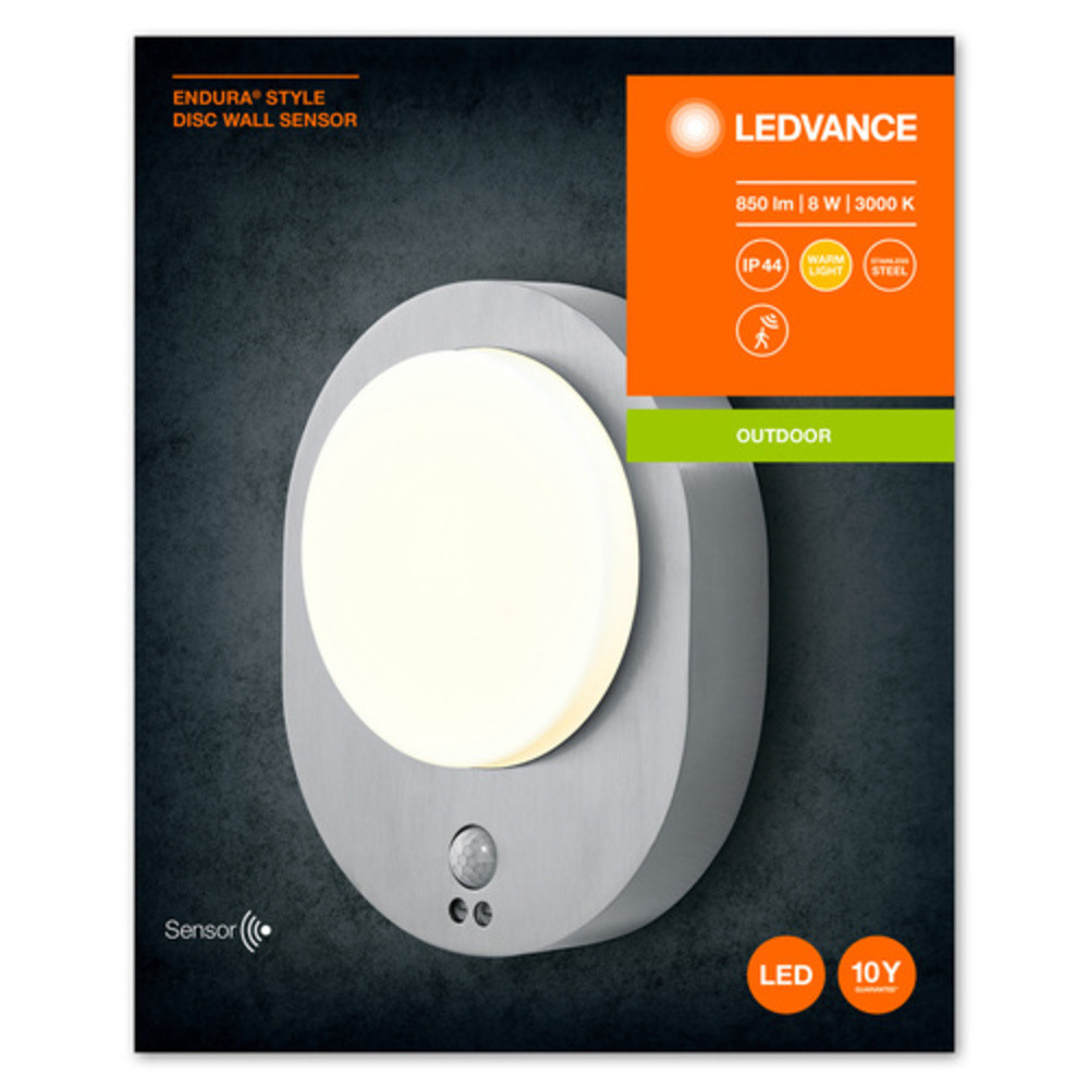 Ledvance Endura Style Disc kültéri fali LED lámpa fény és mozgásérzékelővel, melegfehér, 8W