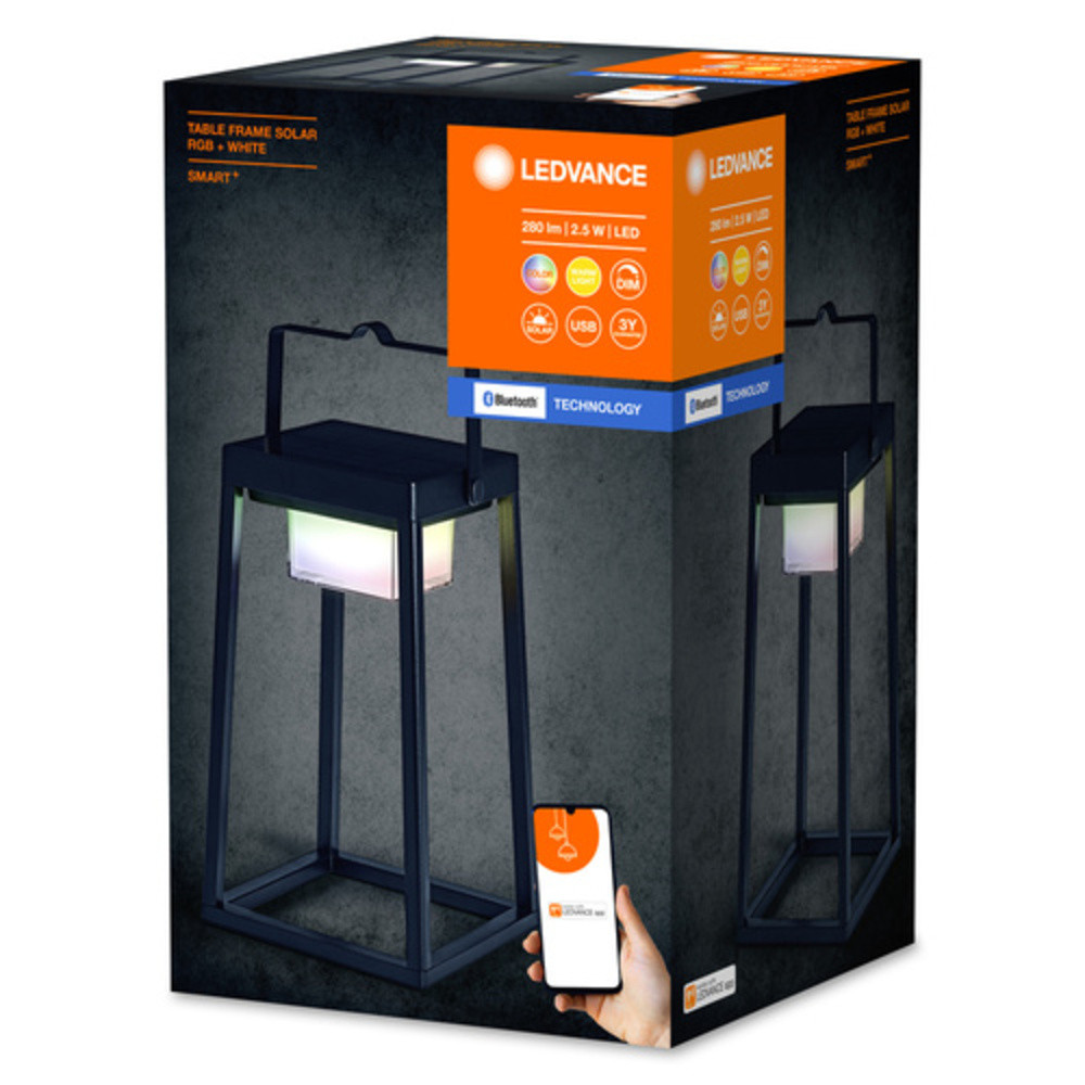 LEDVANCE , Smart+ Solar Table Frame Multicolor , Napelemes LED lámpa , 2,5 W , 3000 K , Dimmelhető , IP44 , Fekete