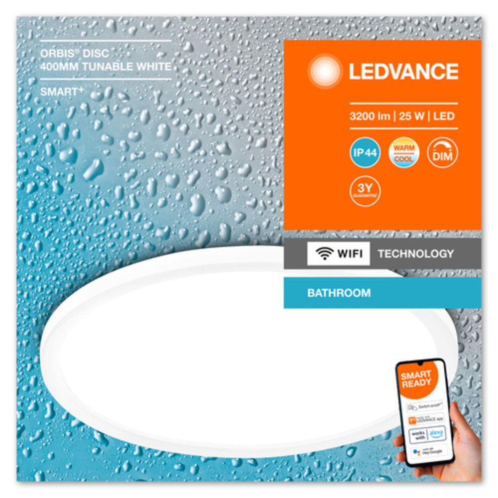 Ledvance Smart+ WIFI intelligens mennyezeti LED lámpa fürdőszobába, hideg/melegfehér, 25 W, fehér színben (Orbis Clean)