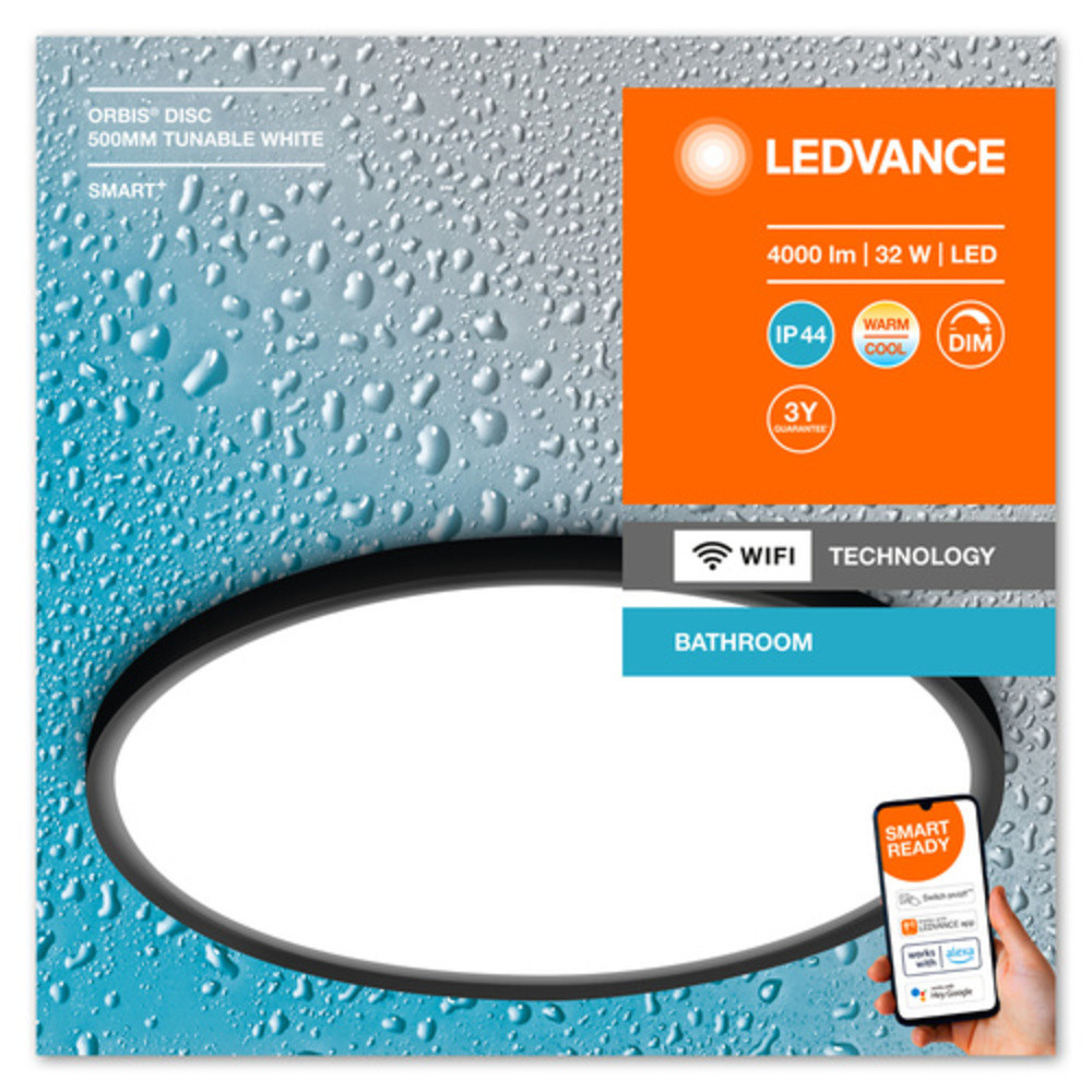 Ledvance Smart+ WIFI intelligens mennyezeti LED lámpa fürdőszobába, hideg/melegfehér, 32 W, fekete színben (Orbis Clean)