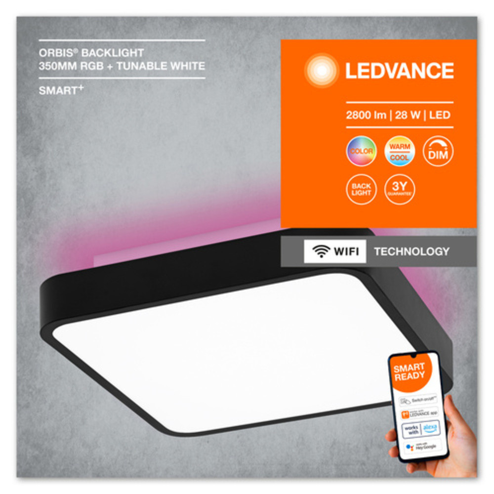 Ledvance Smart+ WIFI intelligens mennyezeti LED lámpa, színes háttérvilágítással, állítható színhőmérséklettel, 28 W, fekete (Orbis Backlight Square RGBW)