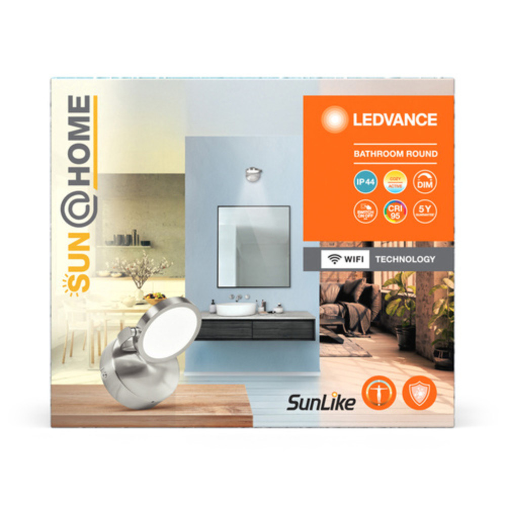 Fürdőszobai lámpák ember központú világítási technológiával. Termékjellemzők: Automatizált biológiai ritmus funkció. Innovatív teljes spektrumú SunLike LED-ek CRI95-tel. A SunLike LED-ek csökkentett kék fénnyel az LED spektrumban. Innovatív lámpaburkolat-technológia, amely otthoni baktériumok és szagok ellen küzd. Hálózatfüggetlen vezérlés IR távvezérlővel. Vezérelhető az LEDVANCE SMART+ WiFi App-on keresztül (minimum Android ™️ 4.4 vagy iOS 10.0 rendszerrel). Hangvezérléssel is vezérelhető, amely elérhető: Google Assistant vagy Amazon Alexa. Szabályozható színhőmérséklet a Tunable White segítségével: 2,200ö...5,000 K. Dimmelhető. Fürdőszoba használatra alkalmas (IP44). Termék előnyei: Alkalmazza a fényt a bioritmusának megfelelően: a megfelelő fény a megfelelő időben. Elősegíti a koncentráció és hatékonyság növelését. Javítja az általános aktivitási szintet és nappali éberséget. Javítja az alvás ritmusát és intenzitását. Javítja az optikai kényelmet. Lehetővé teszi a tisztább levegővel járó biztonság jobb szintű elérését az otthoni baktériumok és rossz szagok elpusztításával. Az egyenletes fényelosztás. Egyszerű és gyors beépítés. Alkalmazási területek: Beltéri alkalmazások. Fürdőszobák (IP44). Lakóterek. Felszerelés / kiegészítők: A teljes szerelő és csatlakoztatási tartozékokat tartalmazza. Az alkalmazáson vagy hangvezérlésen keresztüli vezérléshez kompatibilis okos otthoni rendszer szükséges. Az LEDVANCE SMART + WiFi Appon keresztüli vezérléshez okostelefon vagy táblagép szükséges.