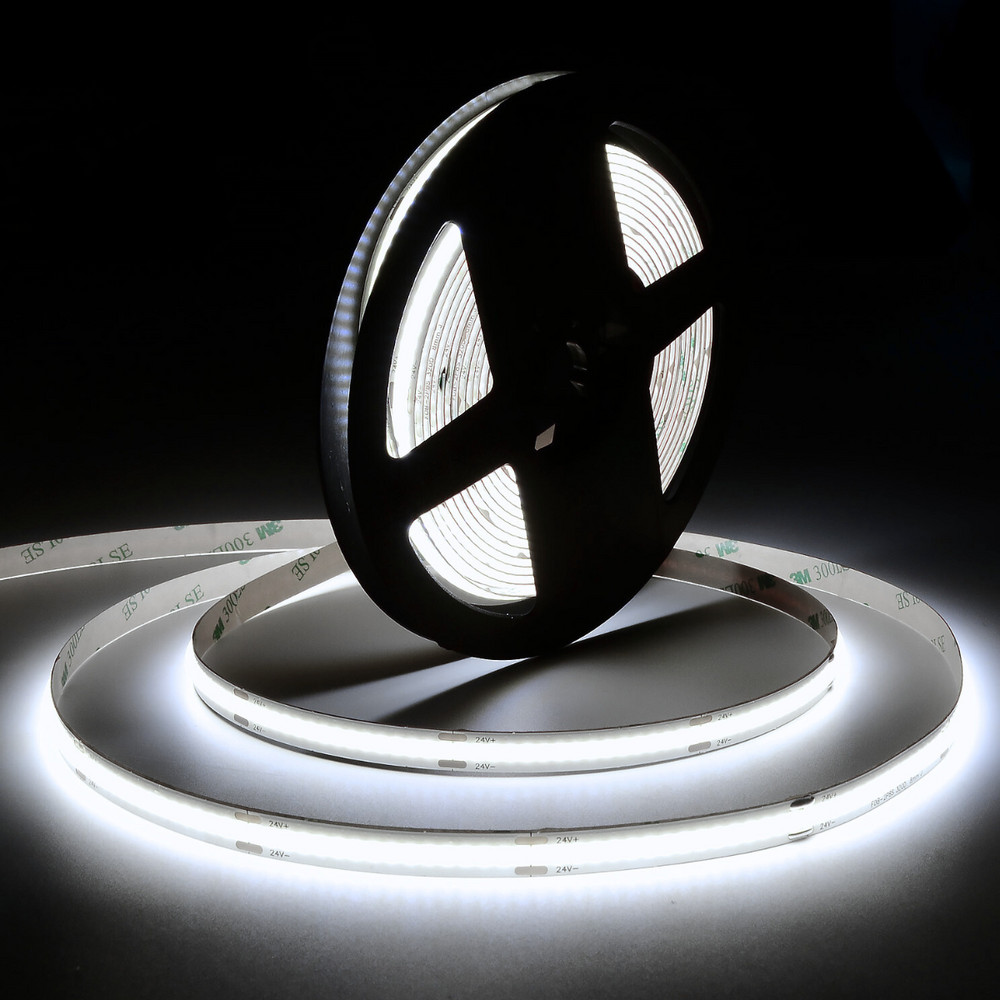 MARATHON COB LED szalag , áramgenerátoros IC-vel , 24 Volt DC , 7.5W/m , 480 led/m , 8mm , >90Ra , hideg fehér , LEDISSIMO