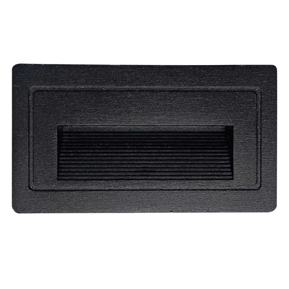 Ez a fekete színű LED lámpa 3W fogyasztású és ebből képes 210 lumen fényáramot kibocsátani 90°-os szögben. Ehhez mérten fényhasznosítása rendkívül jó, pontosan 70 lumen/Watt. Méretét tekintve négyzet alakú, 103 mm széles és 45 mm magas és 58mm mély. A termék beépítési mérete: 92x48mm. A minőségi műanyag borítás jó hőelvezető képességének köszönhetően növeli a LED-chipek élettartamát. A lámpa külső része műanyagból, belső része pedig megfelelő vastagságú alumíniumréteggel van borítva. Ez a kialakítás biztosítja, hogy hosszú távon is megőrizze fényerejét és 30.000 órás üzemidővel rendelkezzen.