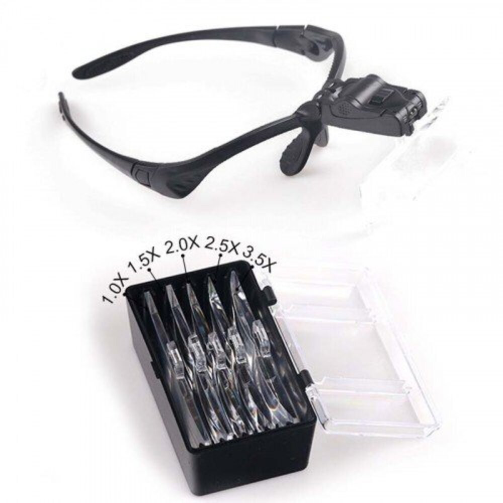 Nagyító szemüveg , 1,0x 1,5x 2,0x 2,5x 3,5x nagyítás , LED fejlámpával , 3 db LR1130 gombelemmel