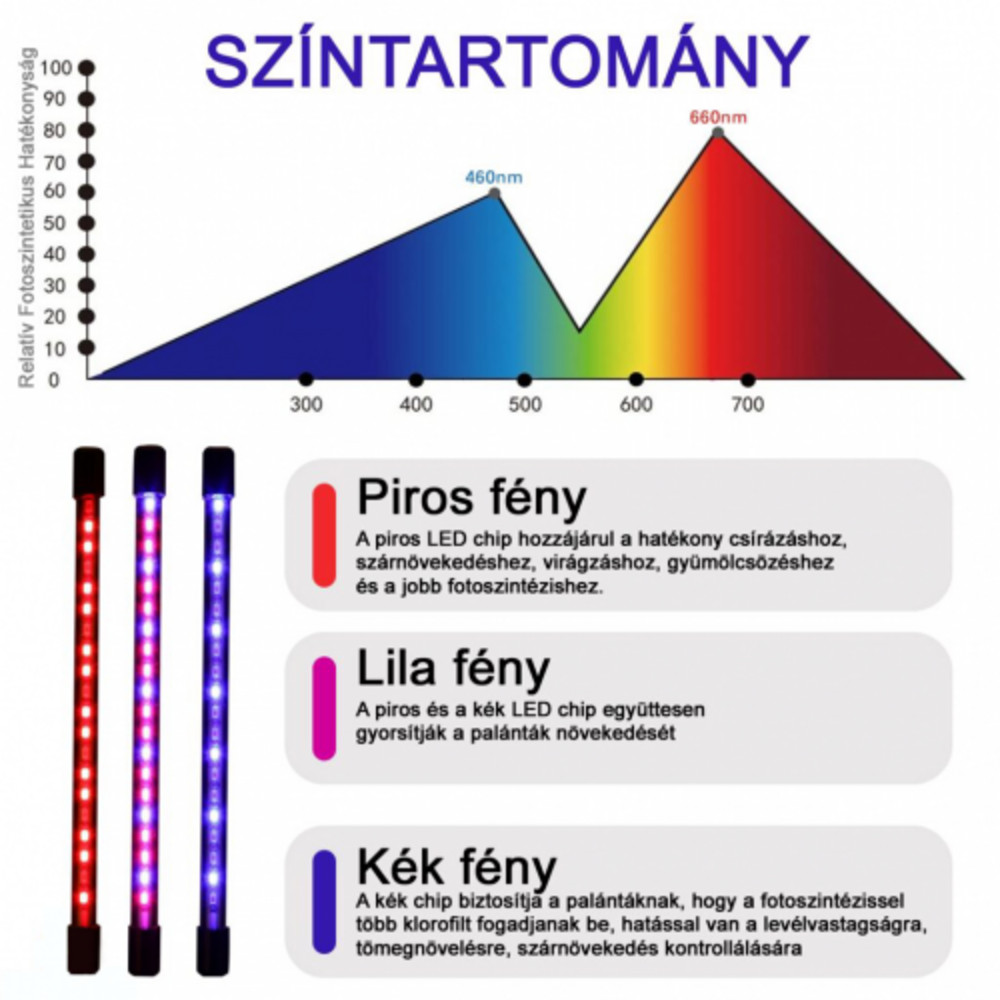 Növénynevelő LED lámpa , 3 karos , 12 Watt , USB , csiptethető , dimmelhető , időzíthető , IP44 , LEDISSIMO GROW