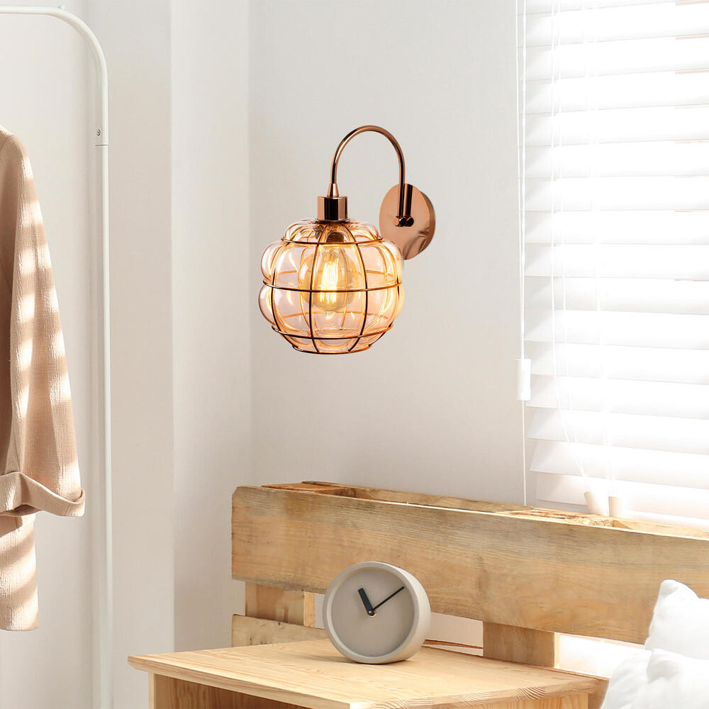 Elbűvölő réz fali lámpa, vastest, 23 x 27 cm, magasság: 30 cm, E27 foglalat (max. 40 W), IP20 | Elegáns üvegsapka, tökéletes szállodai és modern lakberendezéshez, stílusos világítási megoldás
