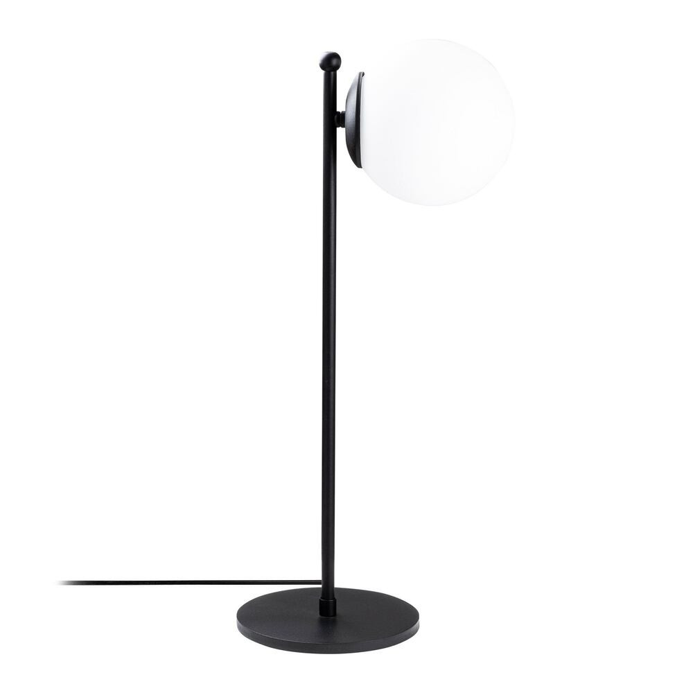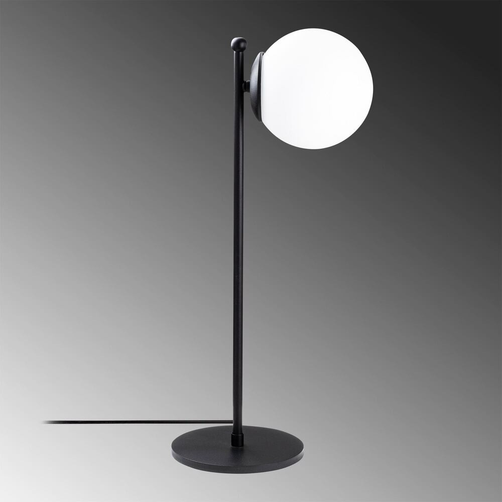 Ipari skandináv asztali lámpa, fekete fém ház, 25 x 25 cm, magasság 56 cm, E27 aljzat max. 40 W, 150 cm kábel, stílusos üvegkupak, tökéletes a modern lakberendezéshez és a környezeti világításhoz