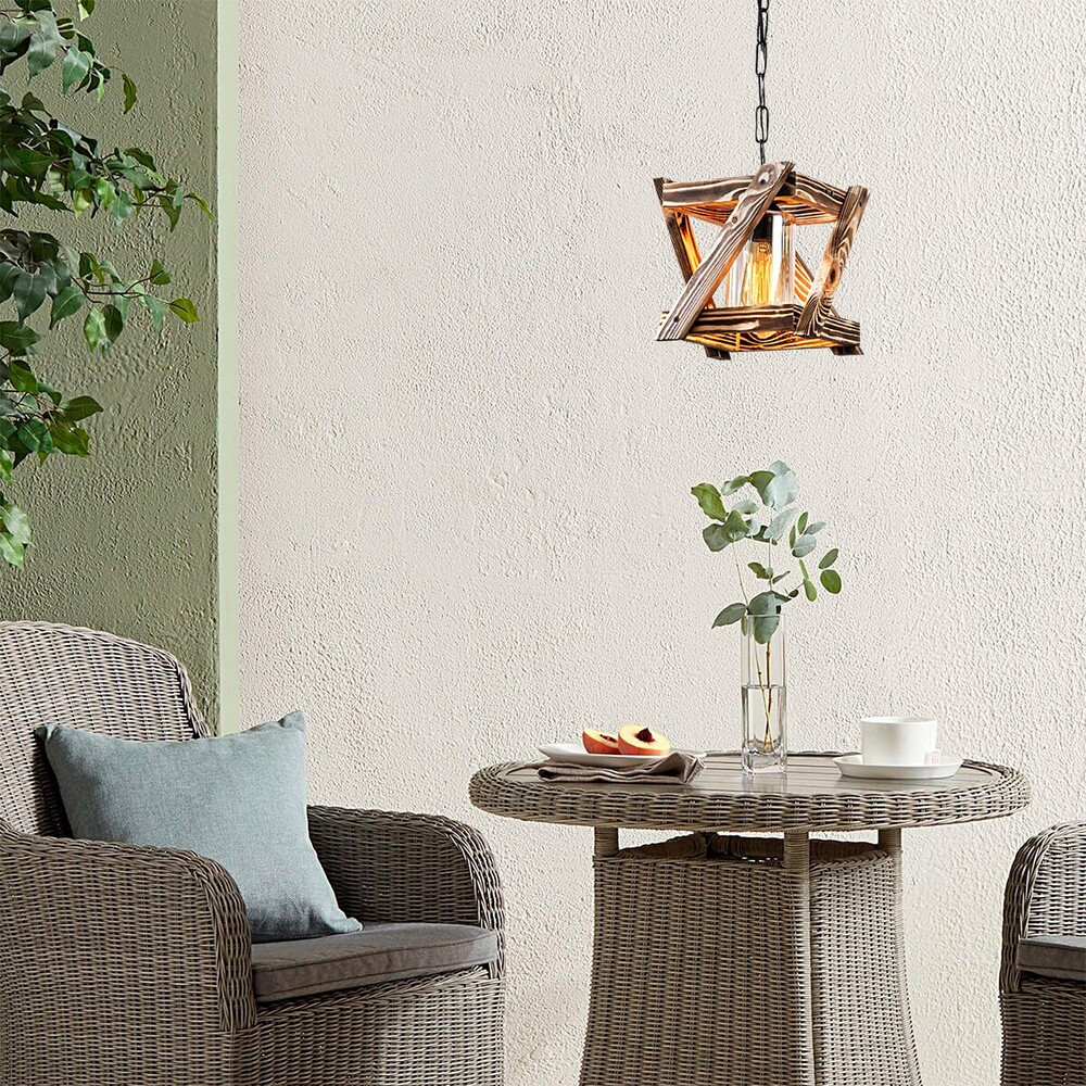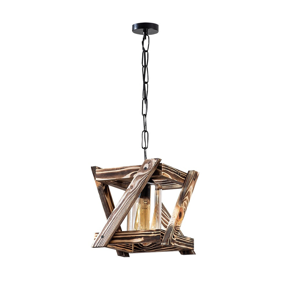 Elegáns csillár gyertyán testtel, 25 x 25 cm, Magasság 73 cm, 40 cm Kábel | E27 Socket Max 40W | Stílusos fekete és fa kivitel | Tökéletes modern és rusztikus lakberendezéshez