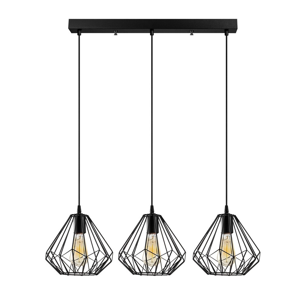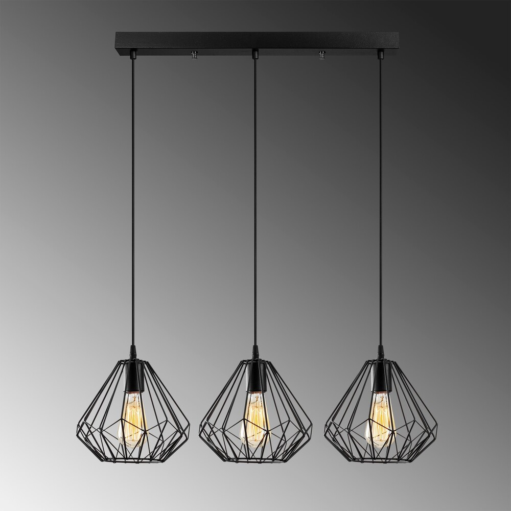 Opviq, 521SHN3393, Ipari fekete csillár, fém test, 73 cm átmérő, 117 cm magasság, állítható, 3 x E27 Max 40 W, elegáns, egyszínű design modern terekhez