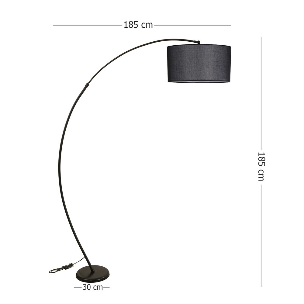 Opviq, 534LUN4240, Állítható fekete állólámpa, fém ház, 185 cm magasság | E27 aljzat, max 40W | Modern ipari formatervezés otthoni és irodai használatra, stílusos és funkcionális