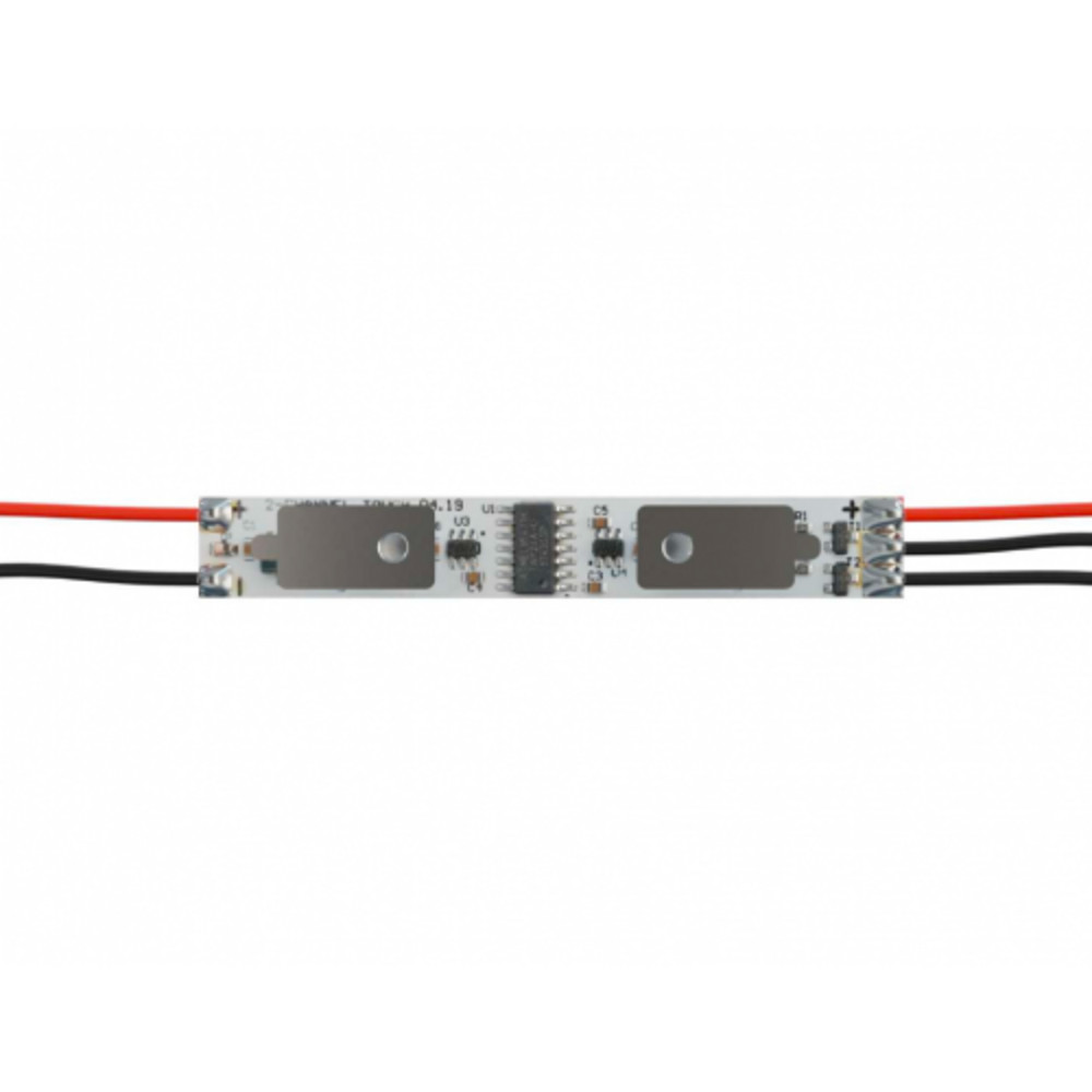 A Dual dimmer , érintős , 12/24V , 60 Watt , 5A , profilhoz  egy kompakt és elegáns megoldás meleg–hideg fehér (CCT) LED szalagok vezérlésére. 12/24V feszültségű LED szalagokhoz készült, legfeljebb 60 Watt teljesítményig (max. 5A terhelhetőség), és tökéletesen illeszkedik alumínium LED profilokba – akár búrával ellátott kivitelbe is.