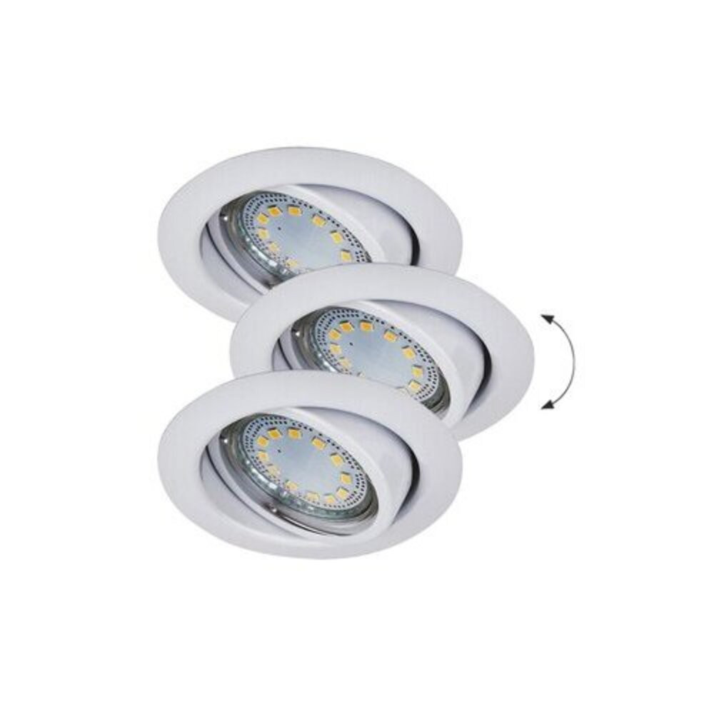 Gipszkarton álmennyezetbe, bútorlapba és polisztirol díszlécbe is beépíthető, modern megjelenésű LED spotlámpa szett (3 db és csomag), fehér színben. A spotok billenthetők, a fény iránya állítható. A 3x3W teljesítményű LED fényforrások 3x240 lumenes fényerőt biztosítanak, melegfehér (3000 Kelvin) színhőmérséklettel. GU10-es foglalatú, maximum 3x50W teljesítményű energiatakarékos fényforrásokkal üzemeltethetők.