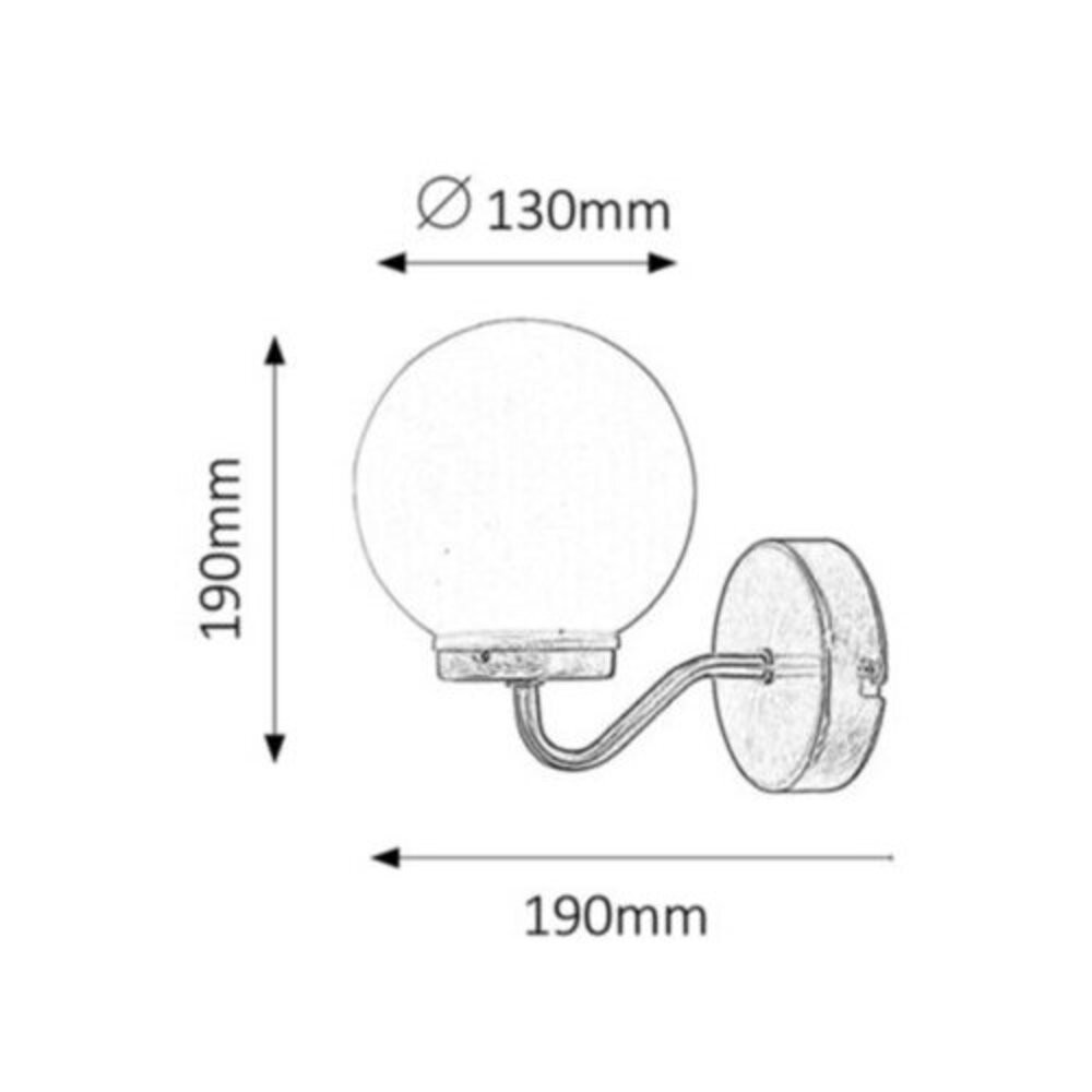 Klasszikus megjelenésű, fürdőszobai falilámpa, bronz színű fém lámpatesttel és opálüvegbúrával. A lámpatest IP44-es védelemmel készült, fröccsenő víz ellen minden irányból védett, így a fürdőszobában is biztonságosan használható. A lámpatest E14-es foglalatú, maximum 40W teljesítményű, halogén vagy LED fényforrással használható.
