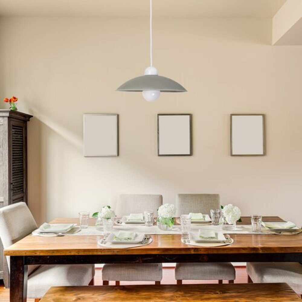 Időtlen megjelenésű függeszték fix kivitelű, 90 cm-es, fehér színű műanyag függesztékkel és 32,5 cm-es ármérőjű, íves kialakítású, szürke színű üvegbúrával. Az IP20-as védettséget adó lámpatest E27-es foglalatkialakítású, max. 60W teljesítményű fényforrással használható. 5 év garanciával!