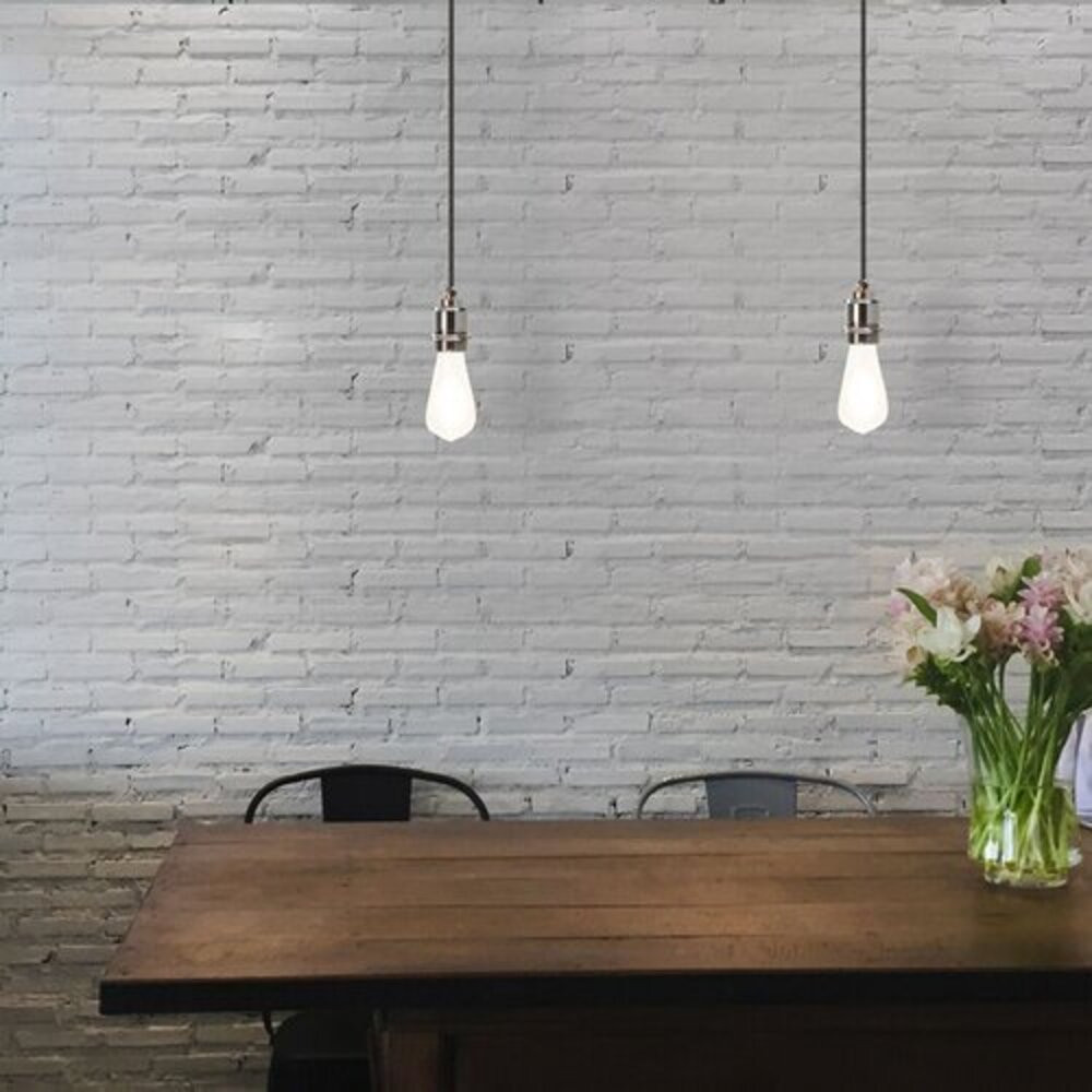 Indusztriális stílusú függeszték 1 db foglalattal. 80 cm lelógású, fekete színű fém szerkezet és foglalat, szövött ’vasalókábel’ vezetékkel. A függeszték E-27-es foglalatú, max. 60W teljesítményű energiatakarékos fényforrással, így akár a különleges megjelenésű, ST58-as formájú, energiatakarékos filament LED izzóval is használható.