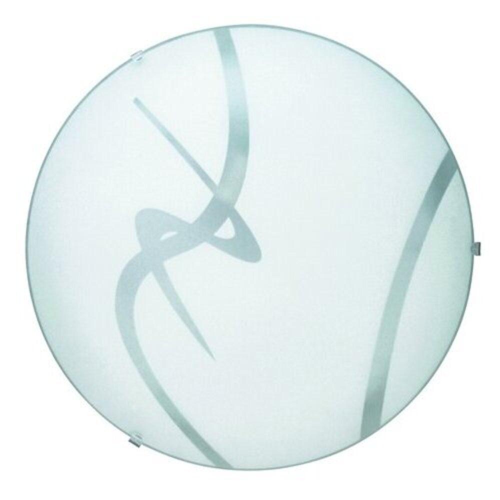 30 cm átmérőjű, retro megjelenésű, geometrikus formákkal díszített mennyezeti lámpa. Fém és műanyag szerkezet, mintás opálüveg lámpabúrával. E27-es foglalatában maximum 60W teljesítményű, halogén vagy LED fényforrással használható.