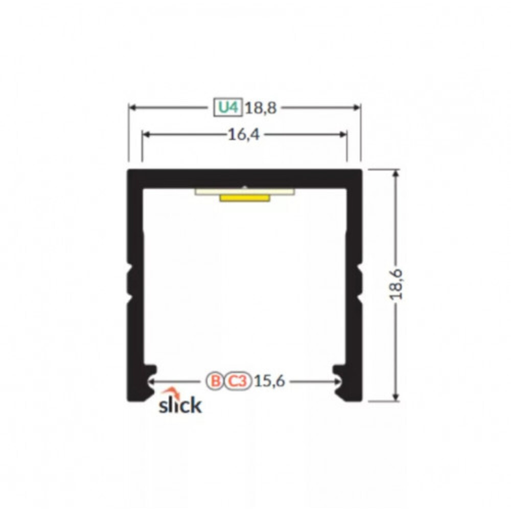 Alumínium U profil LED szalaghoz , 2 méter/db , natúr , SMART16