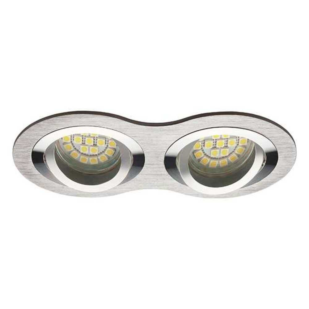 Beépíthető spot lámpatest , kerek , dupla keret , 2 x MR16 , 2 x GU10 , szálcsiszolt króm