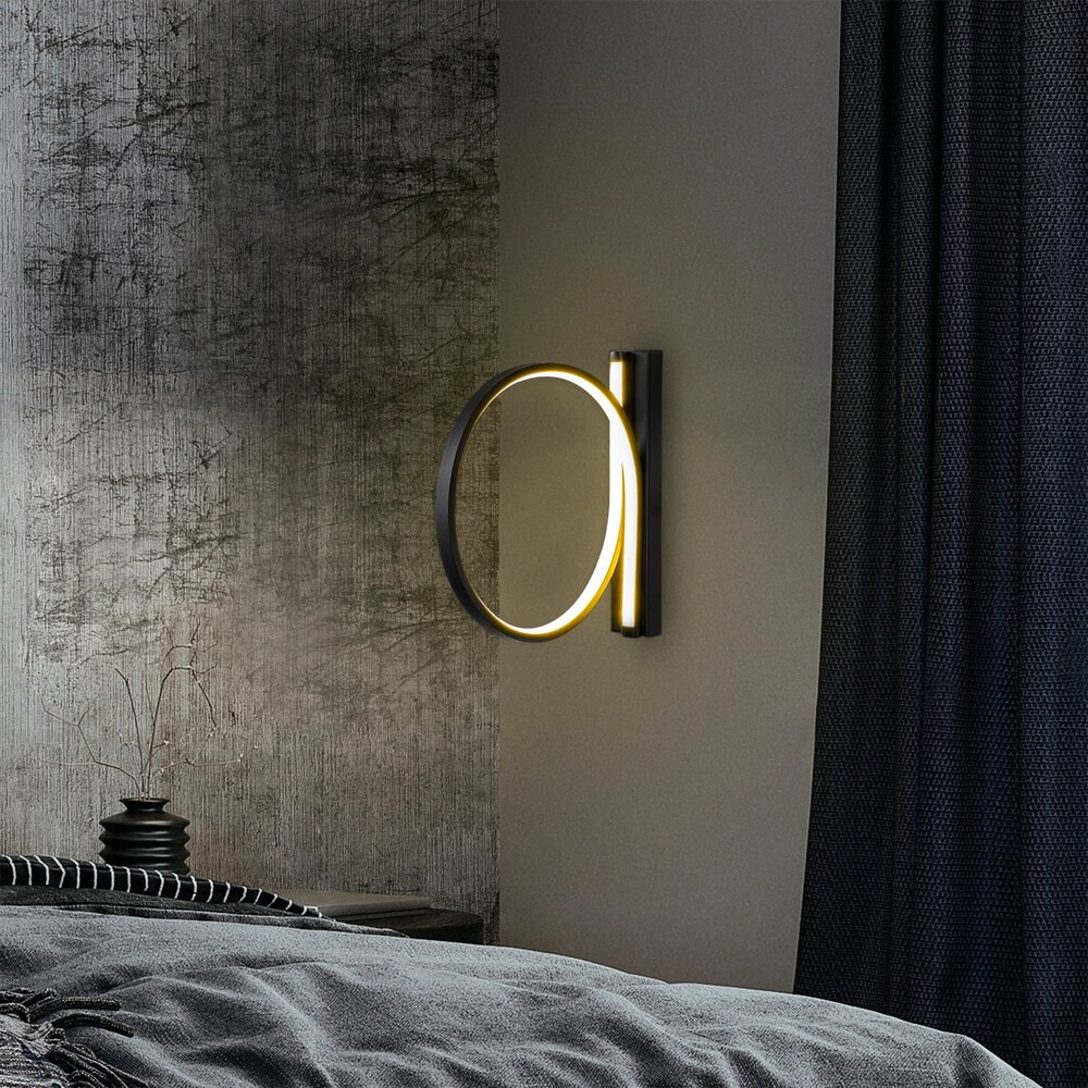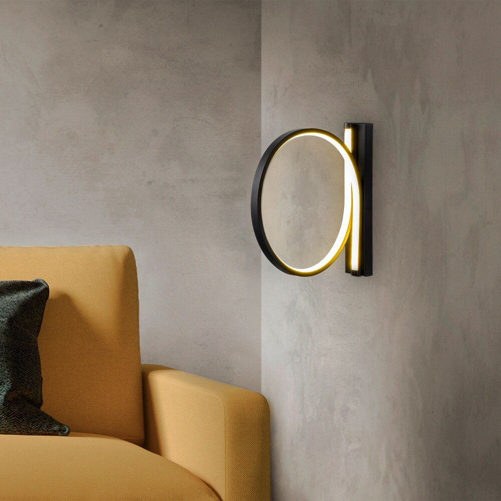 Stílusos fekete fali lámpa, fém ház, 30 cm átmérő, 50 cm mélység | IP20 besorolású, beépített LED 12W 3000K | Tökéletes modern lakberendezéshez, elegáns világítási megoldás bármely helyiségbe