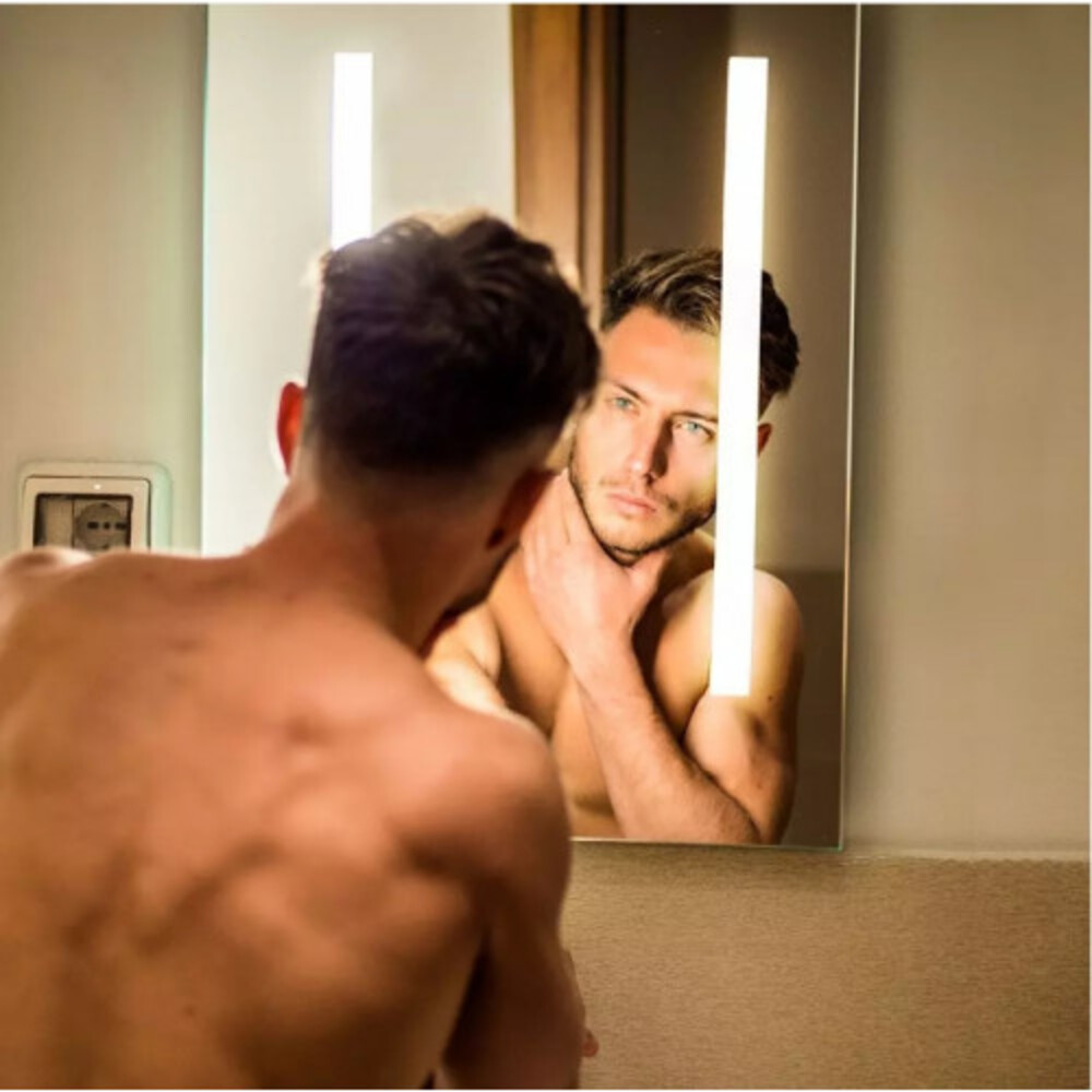Tükör LED világítással , négyzet , 50 x 39 cm , 17W , párásodásmentes , hideg fehér , IP44