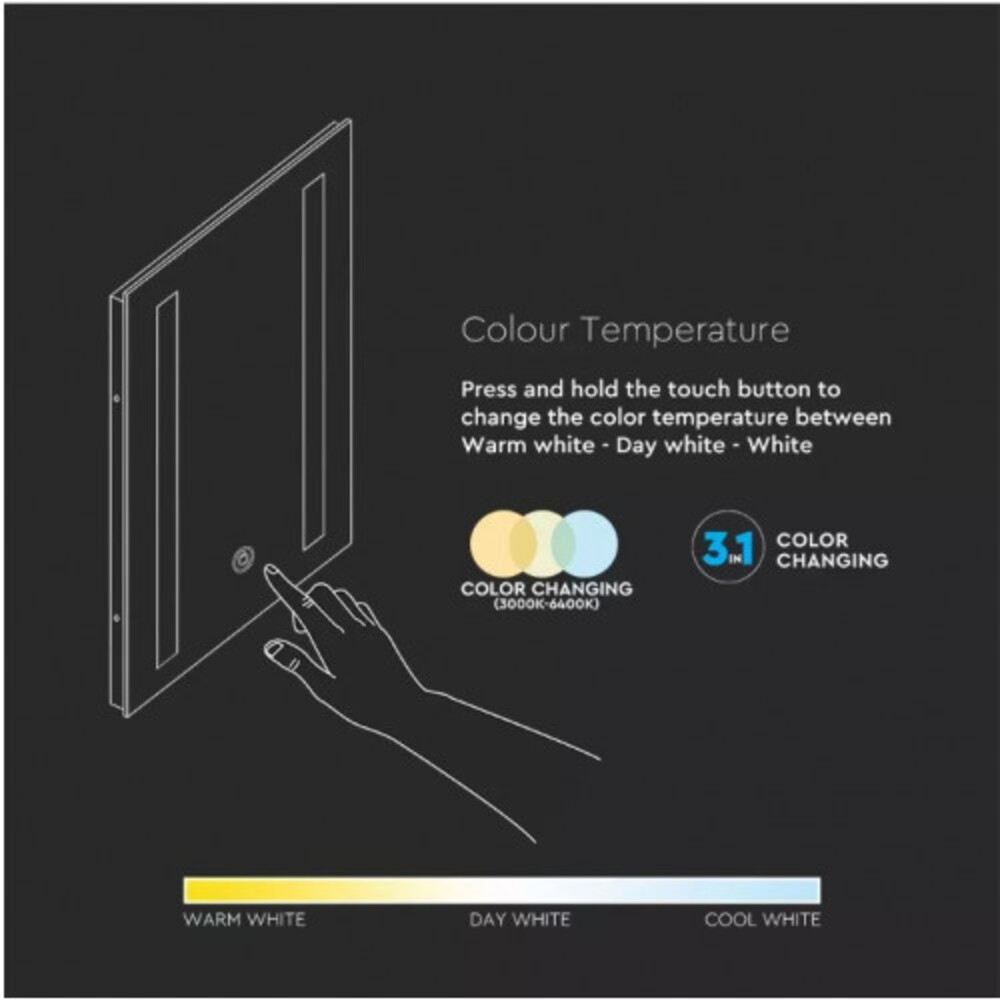 Tükör LED világítással , négyzet , 70 x 50 cm , 30W , párásodásmentes , CCT , IP44