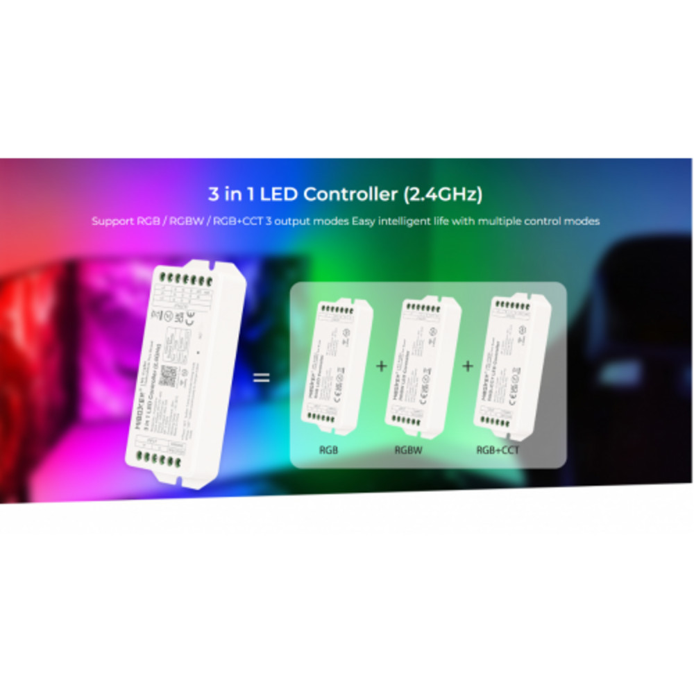 Univerzális csoport (zóna) vezérlő , 3in1 , RGB /RGBW /RGB-CCT , dimmelhető , group control , SMART , Max 20A , RF , Miboxer (Mi-Light) , FUT037P+