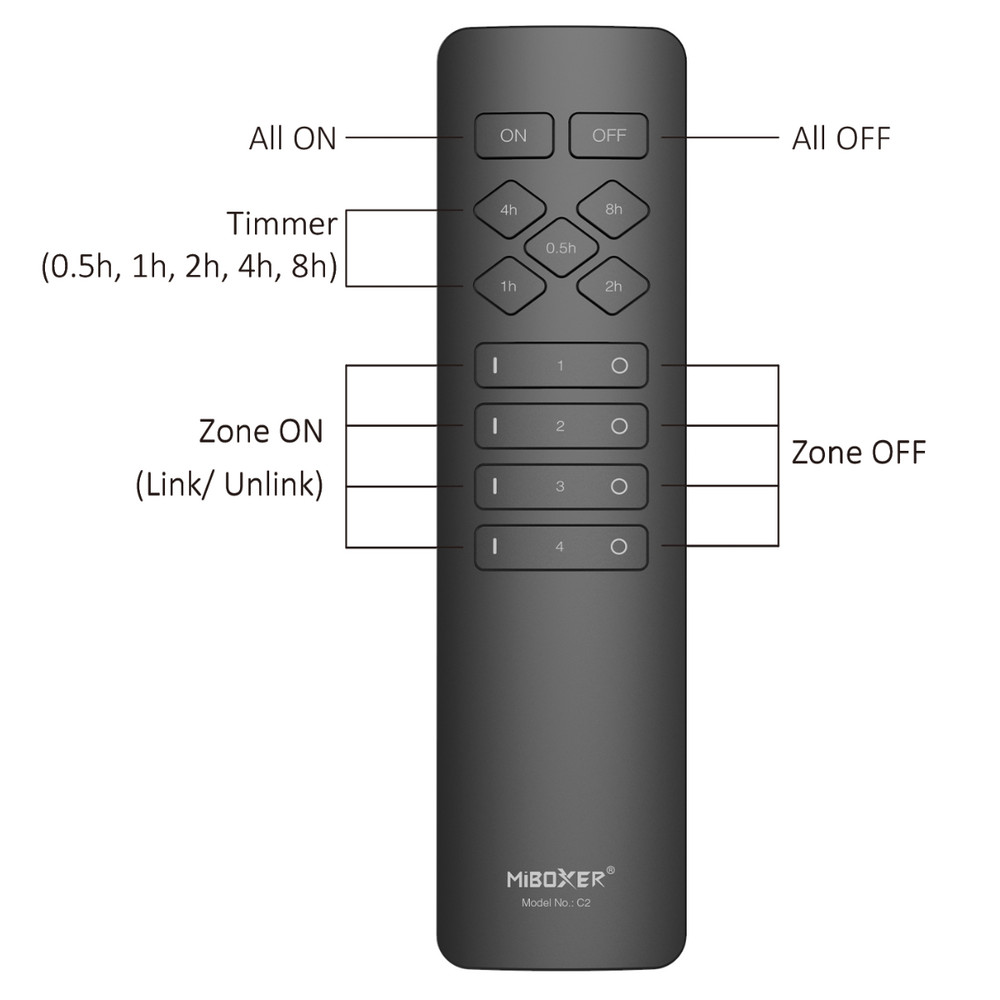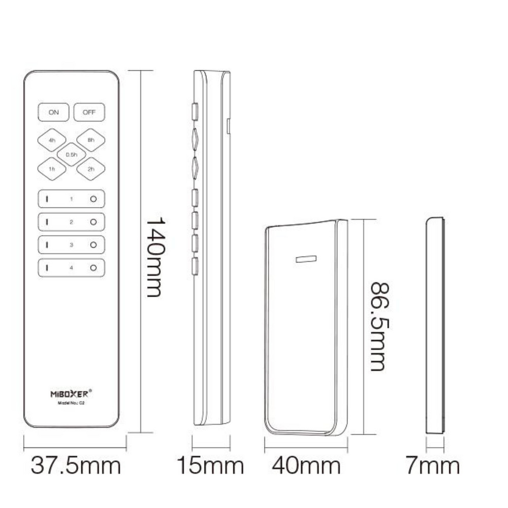 Vezeték nélküli , elemes , tavirányító , mágneses , 2.4GHz , rádiófrekvenciás , 4 zónás , Smart Plug & Switchhez , fekete , Miboxer (Mi-Light) , C2